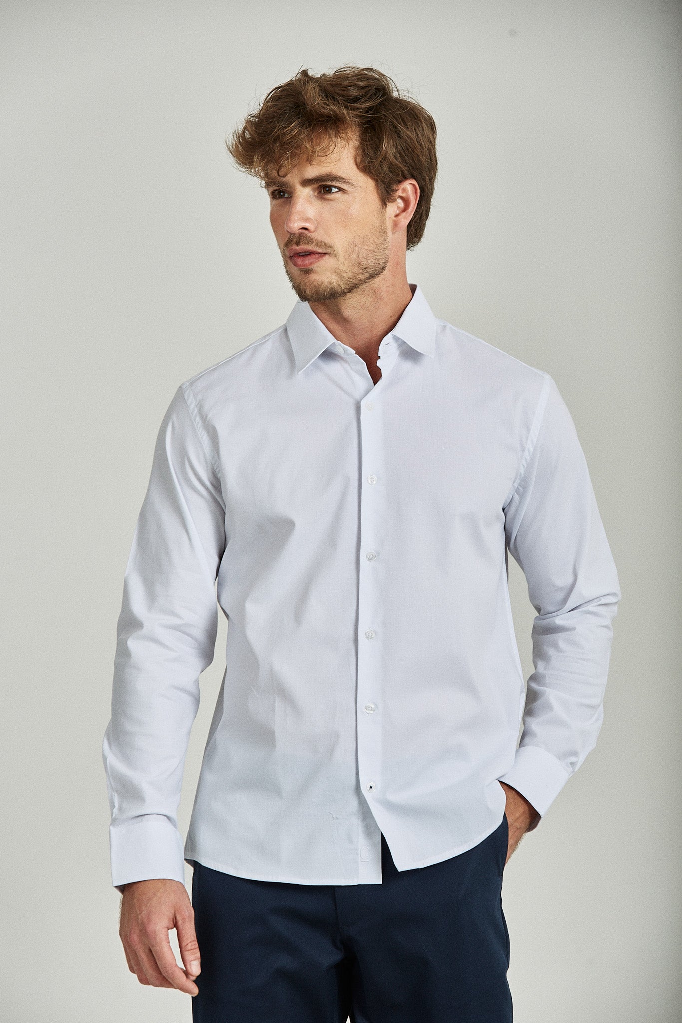 Confeccionada em 100% Algodão Egípcio, esta camisa une conforto e elegância em uma modelagem regular de caimento natural. Com gola clássica, colarinho estruturado e punhos ajustáveis, oferece um visual sofisticado e versátil, perfeito para diferentes ocasiões.