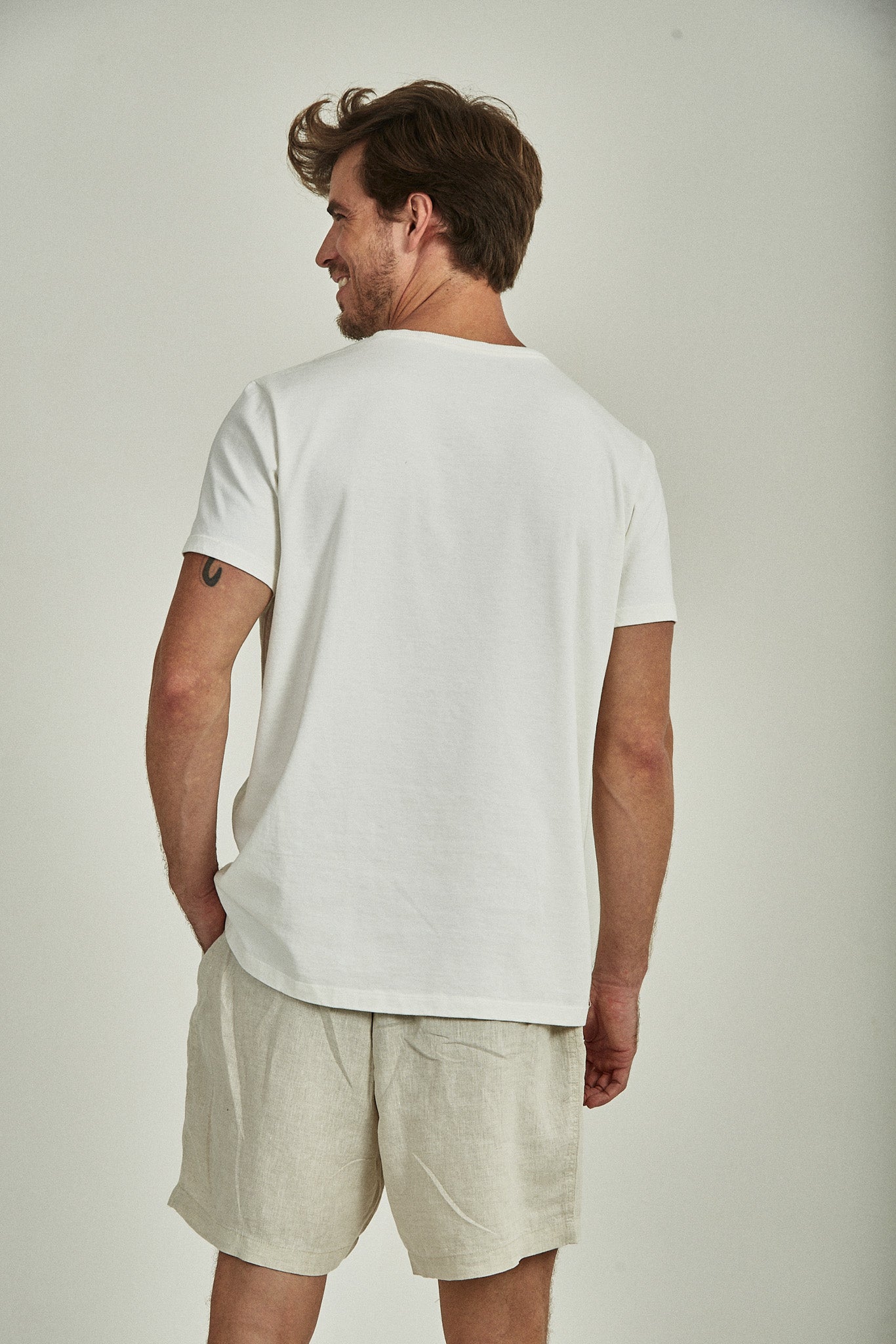 Com modelagem ampla e gola redonda, a peça oferece um visual moderno e descontraído. O pin metálico com o nome da marca complementa o design com um toque de identidade e exclusividade.