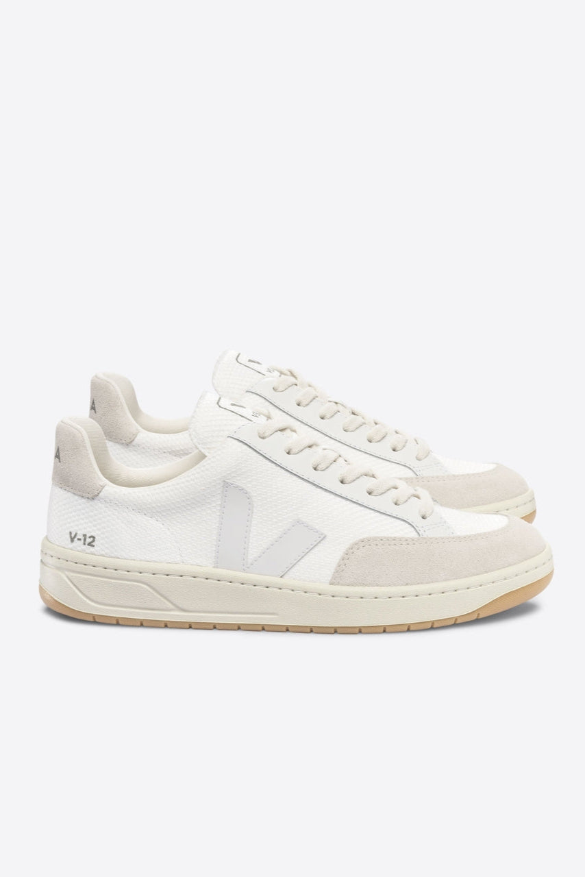 B-Mesh é feito de poliéster 100% reciclado, proveniente de garrafas plásticas recicladas trituradas em flocos e depois transformadas em fibras em uma fábrica brasileira. São necessárias três garrafas plásticas para fazer um par de VEJA - VERT. B-Mesh é um tecido leve, respirável e repelente à água.
