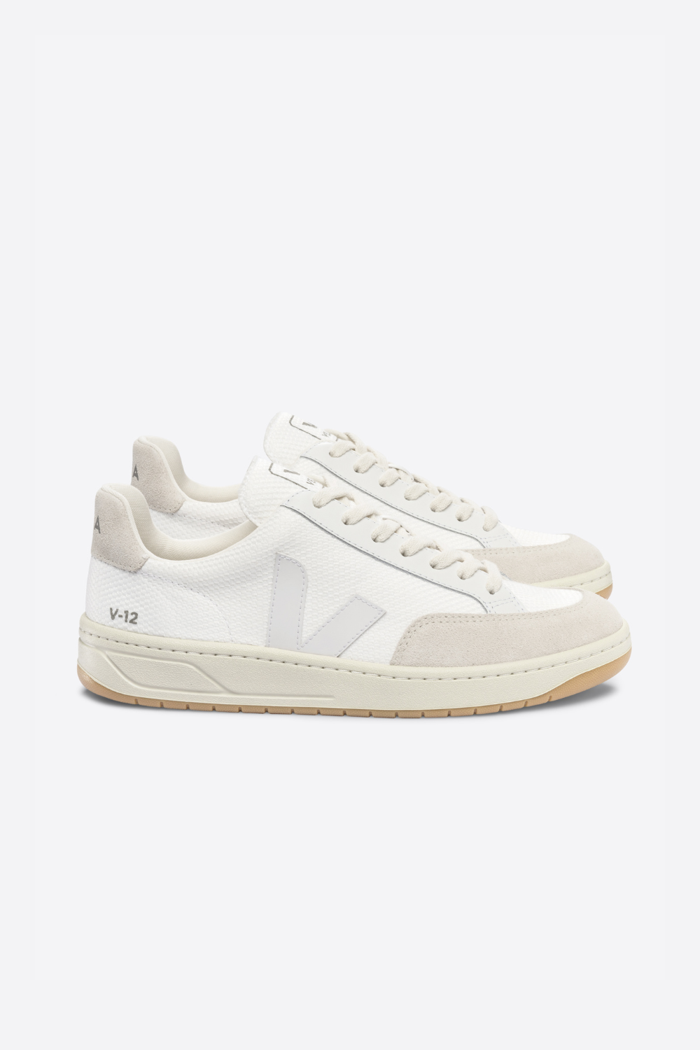 B-Mesh é feito de poliéster 100% reciclado, proveniente de garrafas plásticas recicladas trituradas em flocos e depois transformadas em fibras em uma fábrica brasileira. São necessárias três garrafas plásticas para fazer um par de VEJA - VERT. B-Mesh é um tecido leve, respirável e repelente à água.